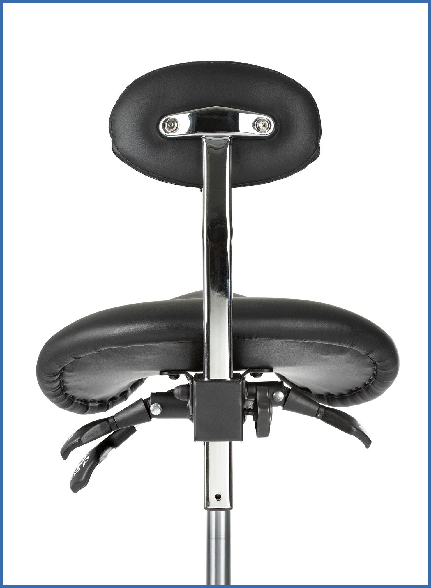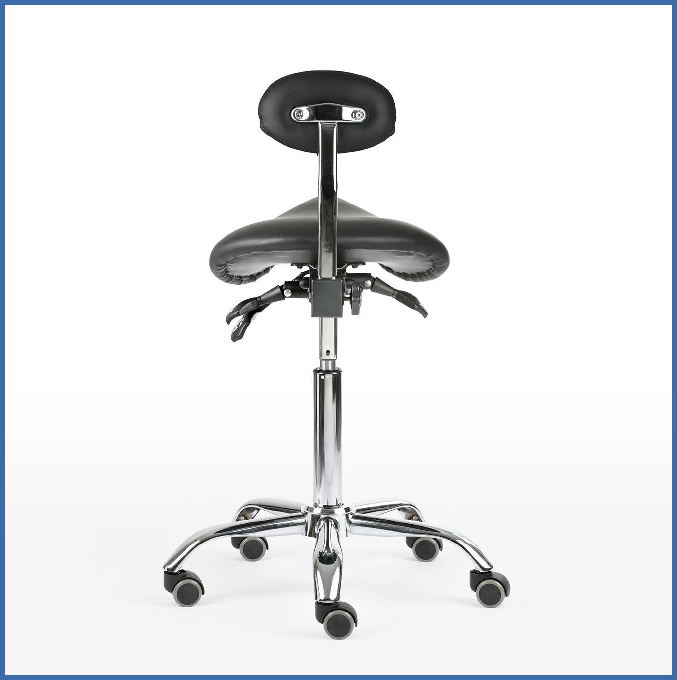 Satulatuolissa on vakiona säädettävä selkänoja, jonka korkeutta ja kallistusta voidaan muuttaa käyttäjän tarpeiden mukaan. Tämä lisää istumamukavuutta ja tukee alaselkää pitkien työpäivien aikana. Kiia 40 satulatuolin krominen jalkaristikko tekee rakenteesta kestävän ja vakaan. Pehmeät PU-pyörät soveltuvat erityisesti koville lattiamateriaaleille, kuten parketille, laminaatille ja laattalattioille, ja mahdollistavat sujuvan liikkumisen työpisteellä.